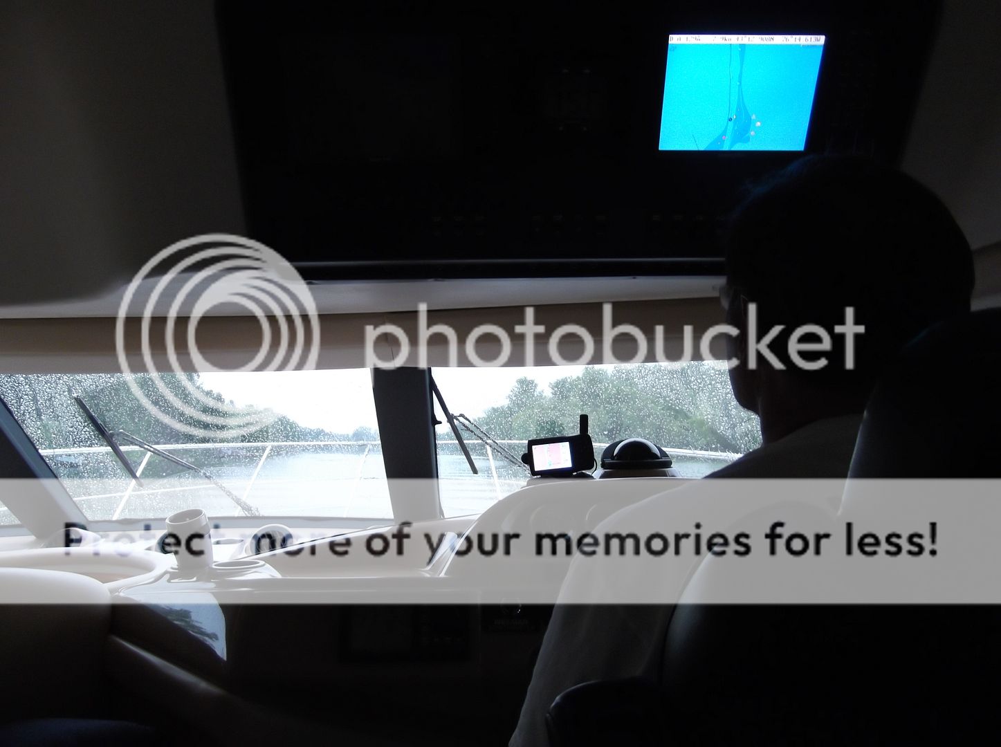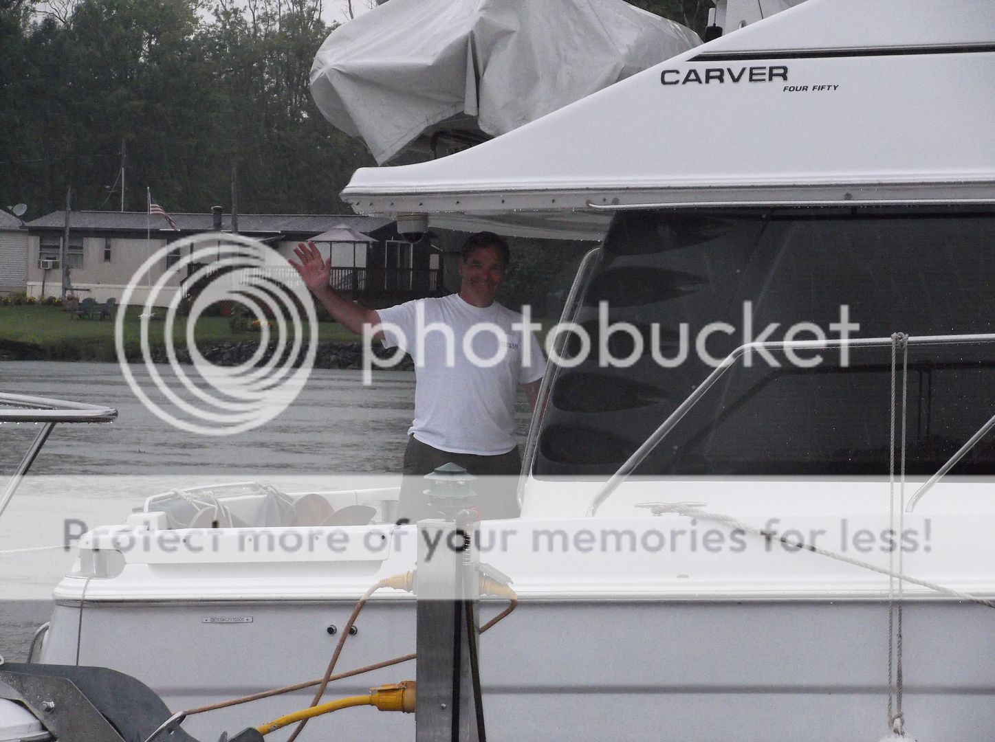 We ran the full gambit of weather today. We started out of Port Dalhousie this morning onto Lake Erie with cloudy skies and no wind. The weatherman hit the forecast dead on today. Light rain on Lake Ontario and flat calm seas. Got to love a boat with a lower helm on days like today. We ran the boat from the flybridge for the first 45 minutes, but saw on the radar that the ran was coming. So we stopped; came down to the lower helm and keep on going. We ran 140 miles on Lake Ontario today and came into Oswego, NY at 12:15pm. The rain was off and on until about 11:00 then the sun popped out. Again, on a scale of 1 to 10, the lake was an 11.
