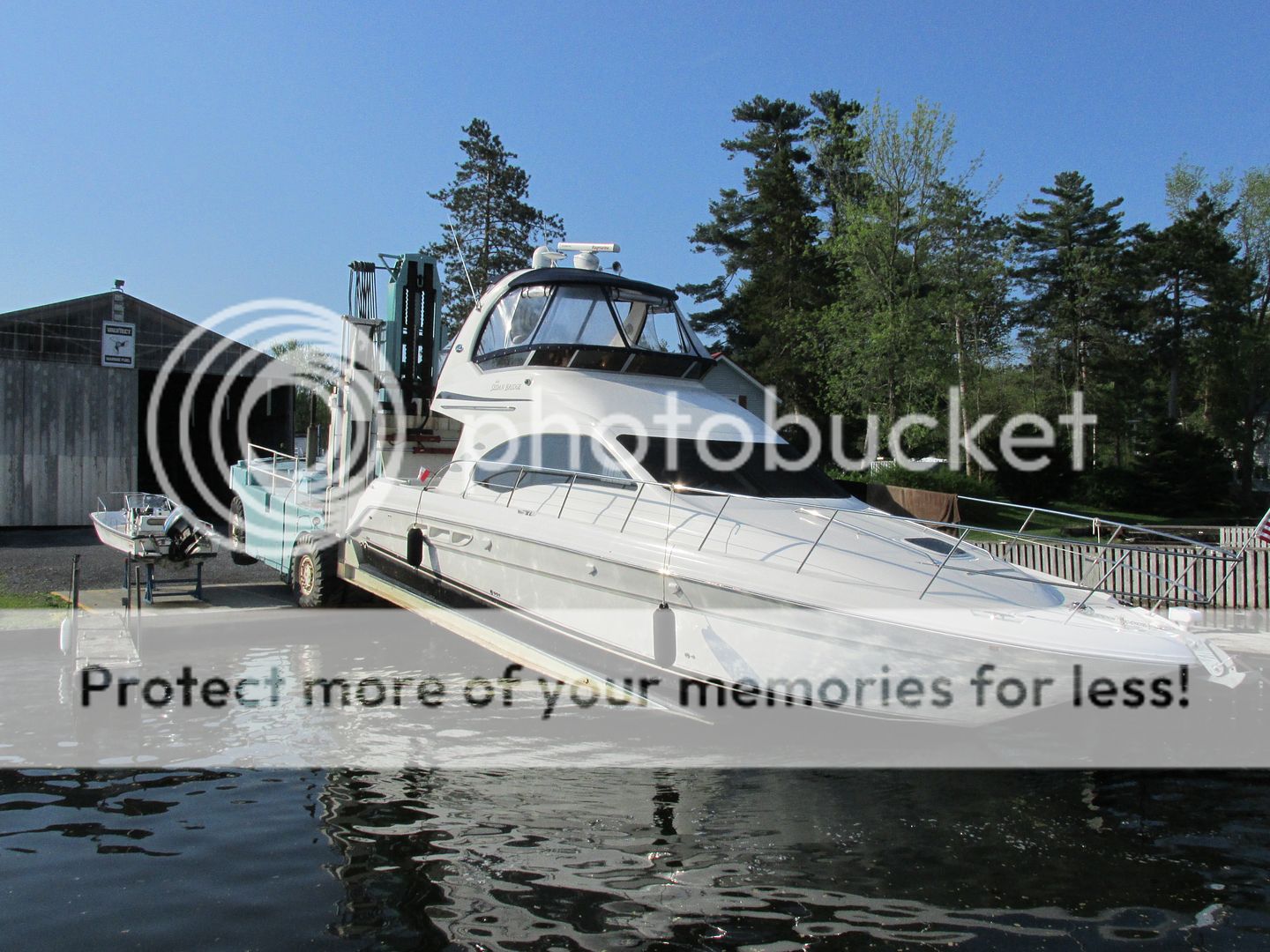So, I will be flying home in a few hours, but I thought I would post a few pictures. As tough a day as I had and the owner of this Formula, it is nothing compared to this 44 Sea Ray pictured below. He hit a rock and bent the props, shafts and strut. His bill will be over $20k and they have no idea when he will be ready to go. Then to add insult to injury, he wrapped some shrink wrap around his good prop as he was entering one of the locks. He was happy to get the boat tied up at the dock.